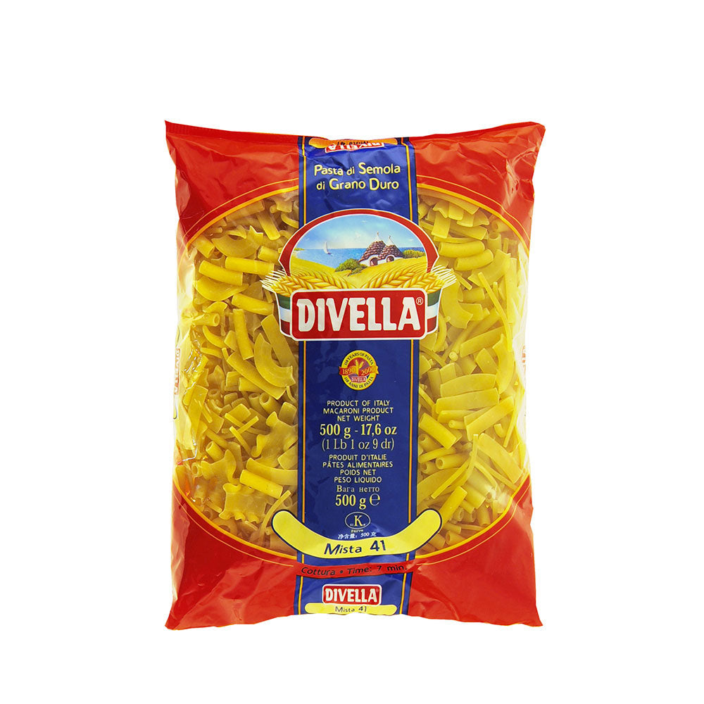 DIVELLA PASTA GR 500 MISTA N 41 Ingredients: Durum wheat samolina, Water For allergens see ingredients in bold.